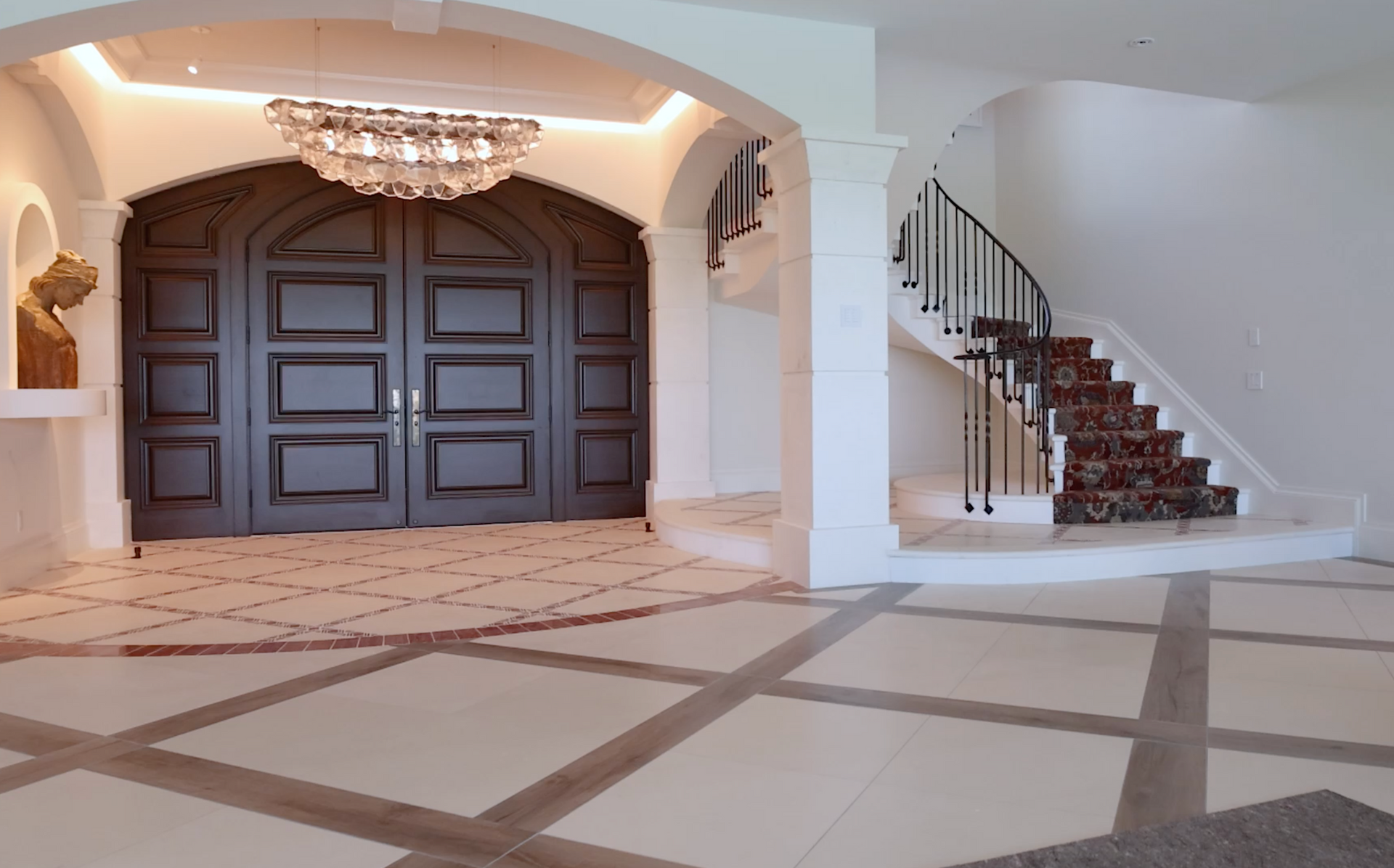 The circular staircase with a burnished black steel banister was inspired by staircase on a ship.
