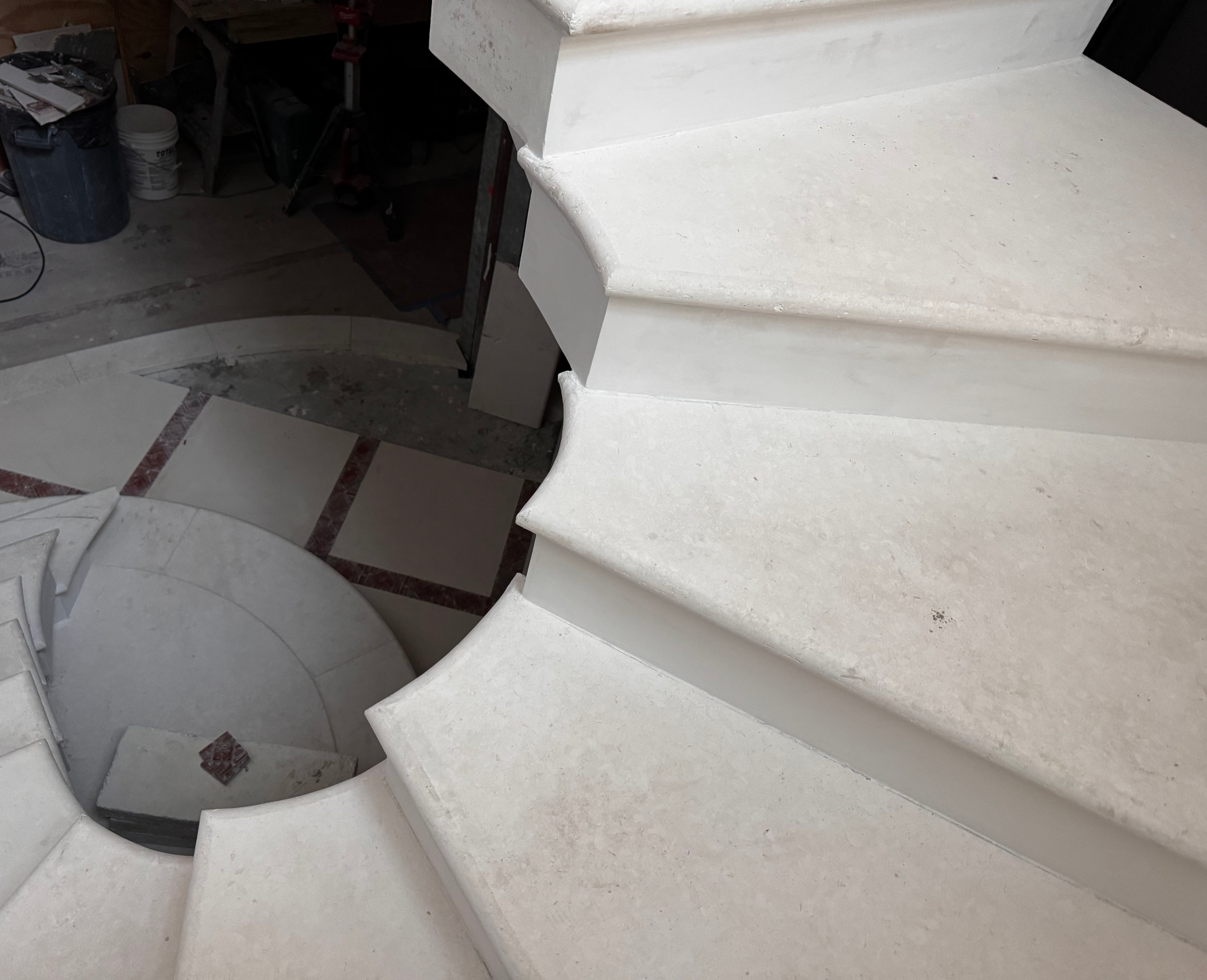 Imported Turkish limestone gives the stairs a beautiful finished surface!