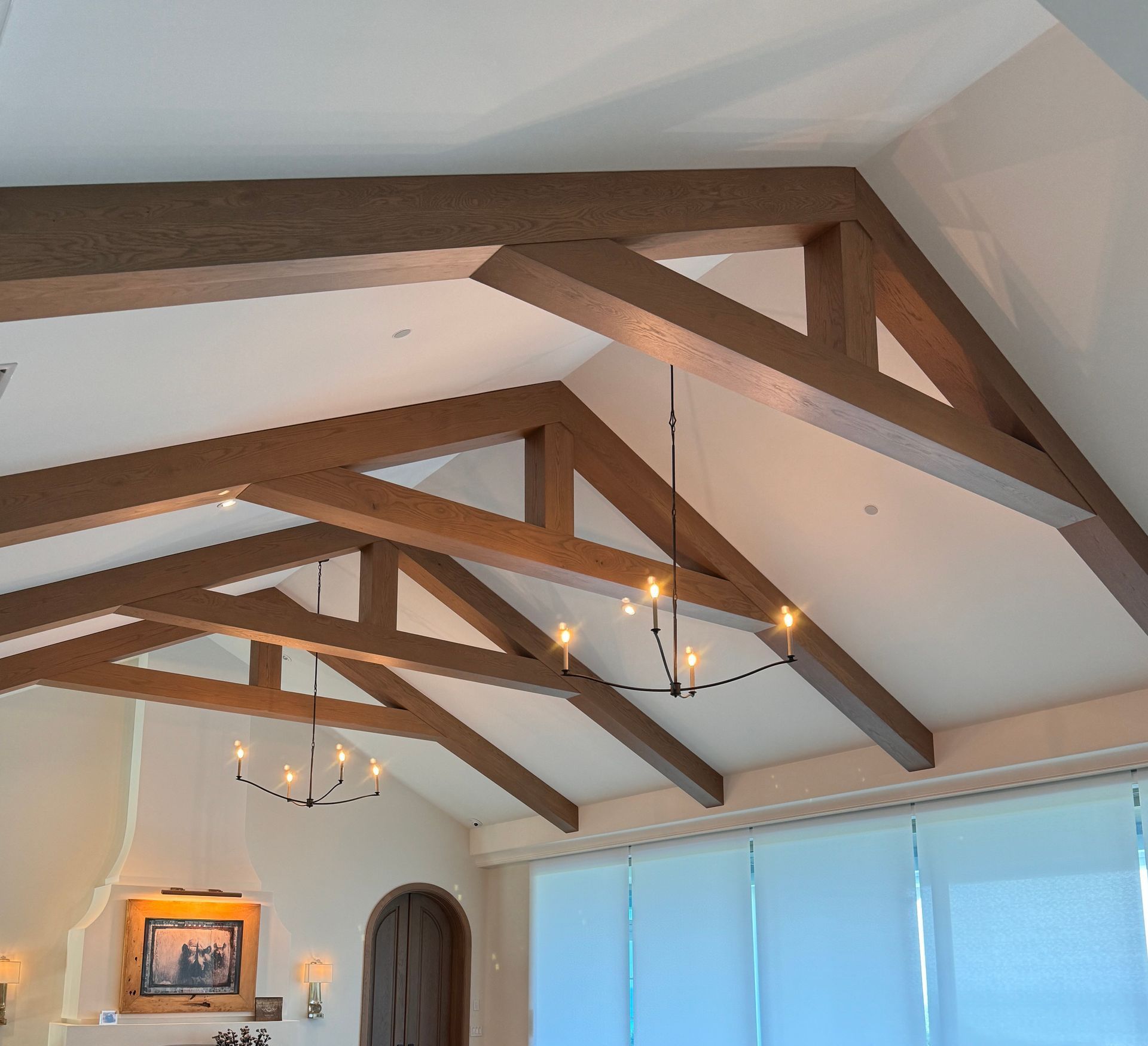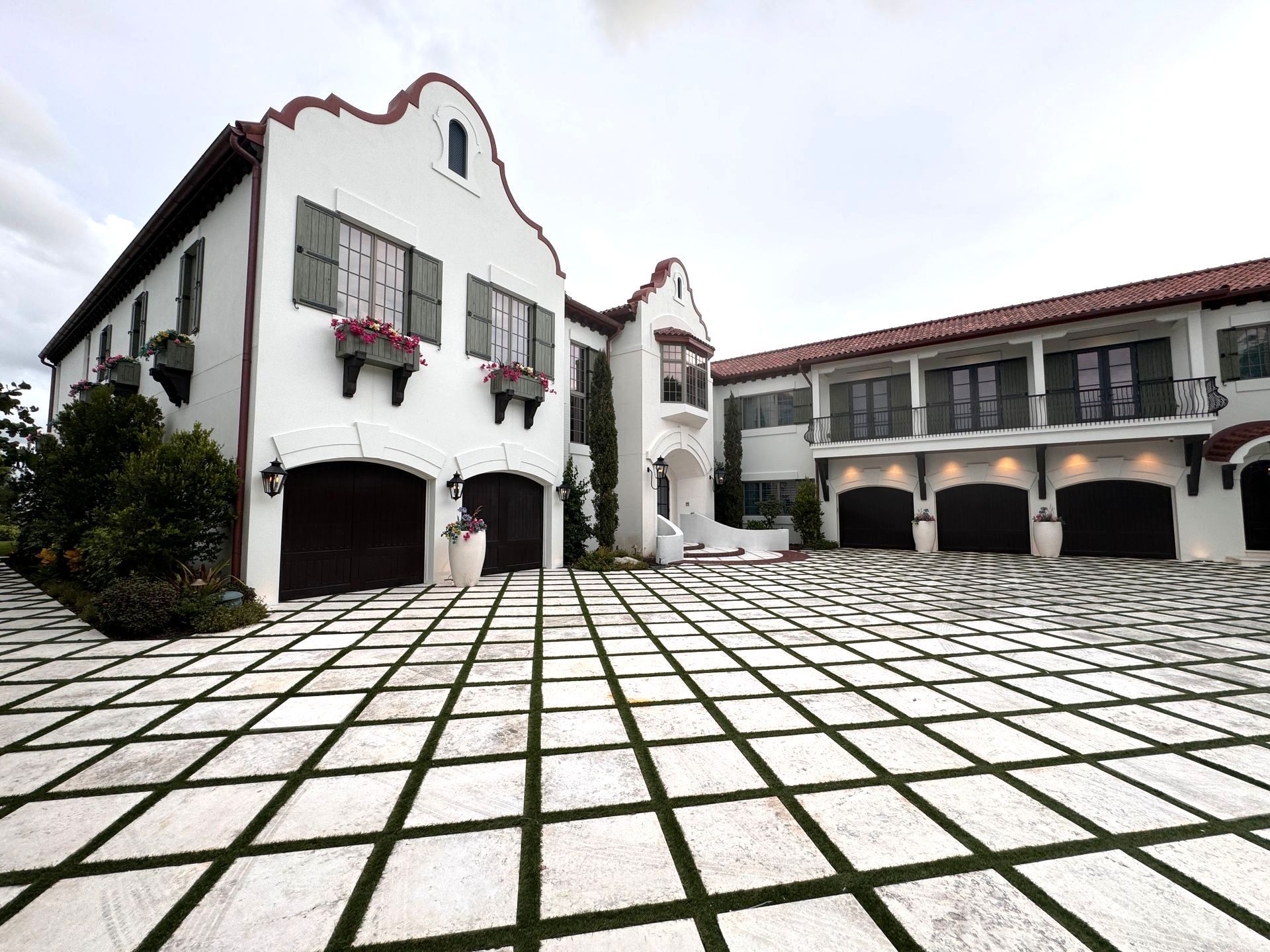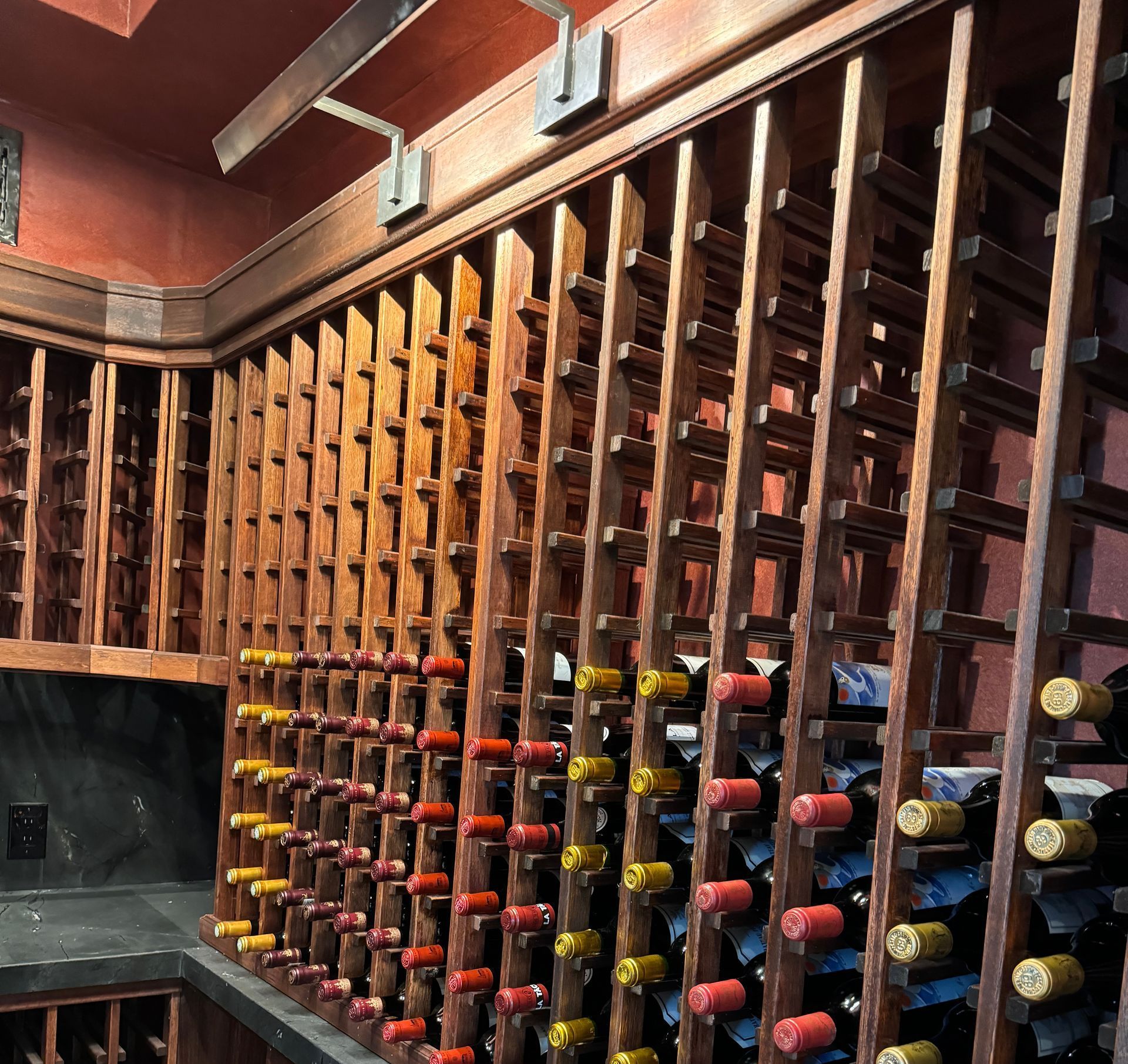 This remarkable home is a true testament to creative design, blending inspiration from various sources, including a circular staircase spotted on a cruise ship. Each element, from the custom white oak beams in the living and dining area to the intricately designed circular staircase with a sleek black steel banister, showcases exceptional craftsmanship. The home features period door pulls, a mahogany wine rack of furniture quality, and various custom-made elements like the wall niche for sculptures, iron banisters, and planters, all crafted by JCB artisans.